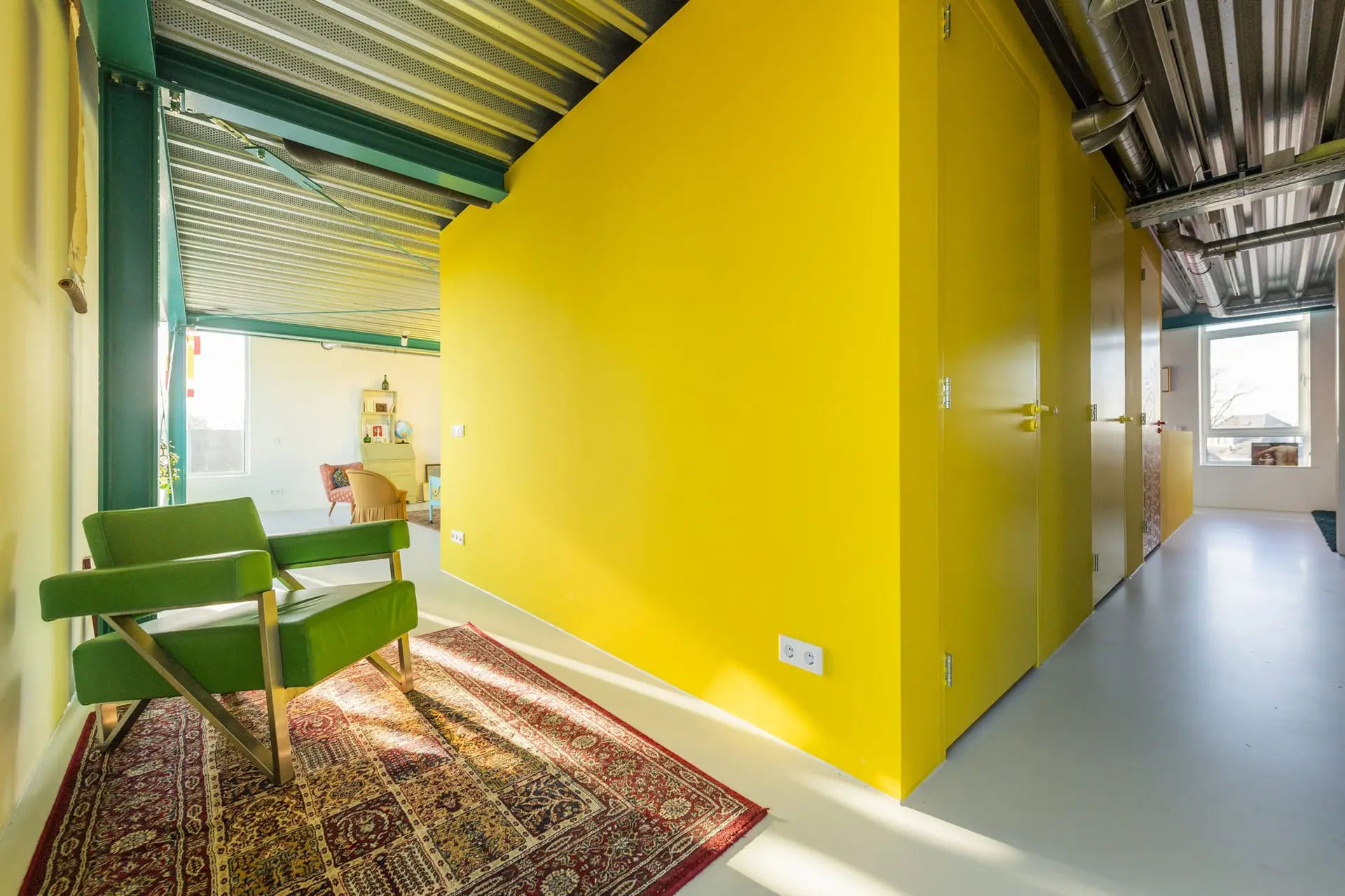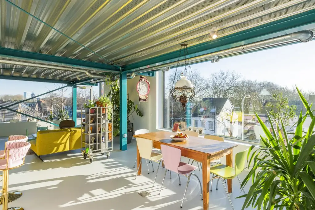 De begane grond en de nieuwe verdiepingen zijn grondig gerenoveerd met moderne materialen en technieken, waardoor het gebouw nu zowel voor zakelijke doeleinden als voor privégebruik geschikt is. Dit dual-use concept zorgt voor een dynamische interactie tussen werken en wonen.